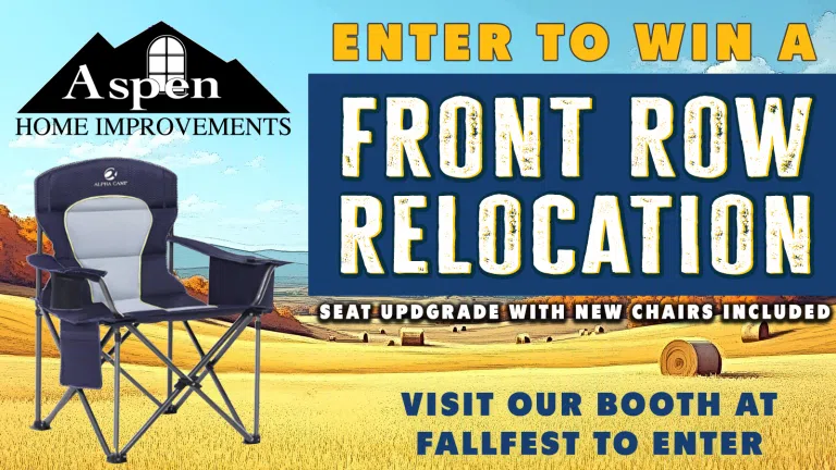 Aspen Home Improvements is giving you a chance to relocate your seats to the FRONT ROW of the VIP section at FallFest, plus give you two new lawn chairs to enjoy the show from the front.